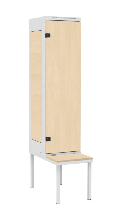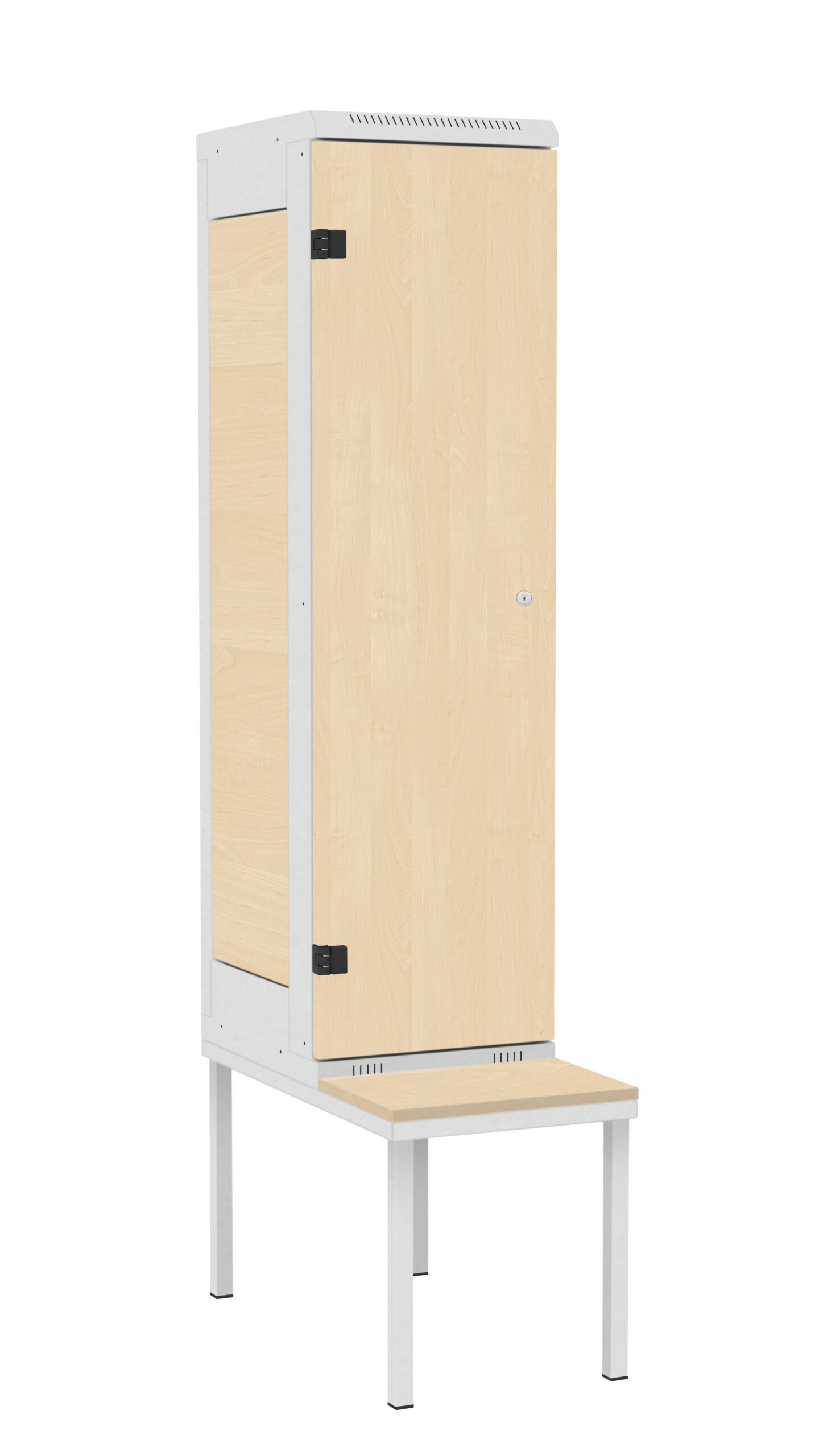 Our locker cabinet made of a combination of sheet steel and laminate is the ideal solution for locker rooms in companies, schools, sports facilities, hospitals, swimming pools and more. The welded frame construction with steel sheet thicknesses from 0.8 to 1 mm guarantees strength and minimizes assembly time. The high quality and workmanship ensure reliable and durable equipment.