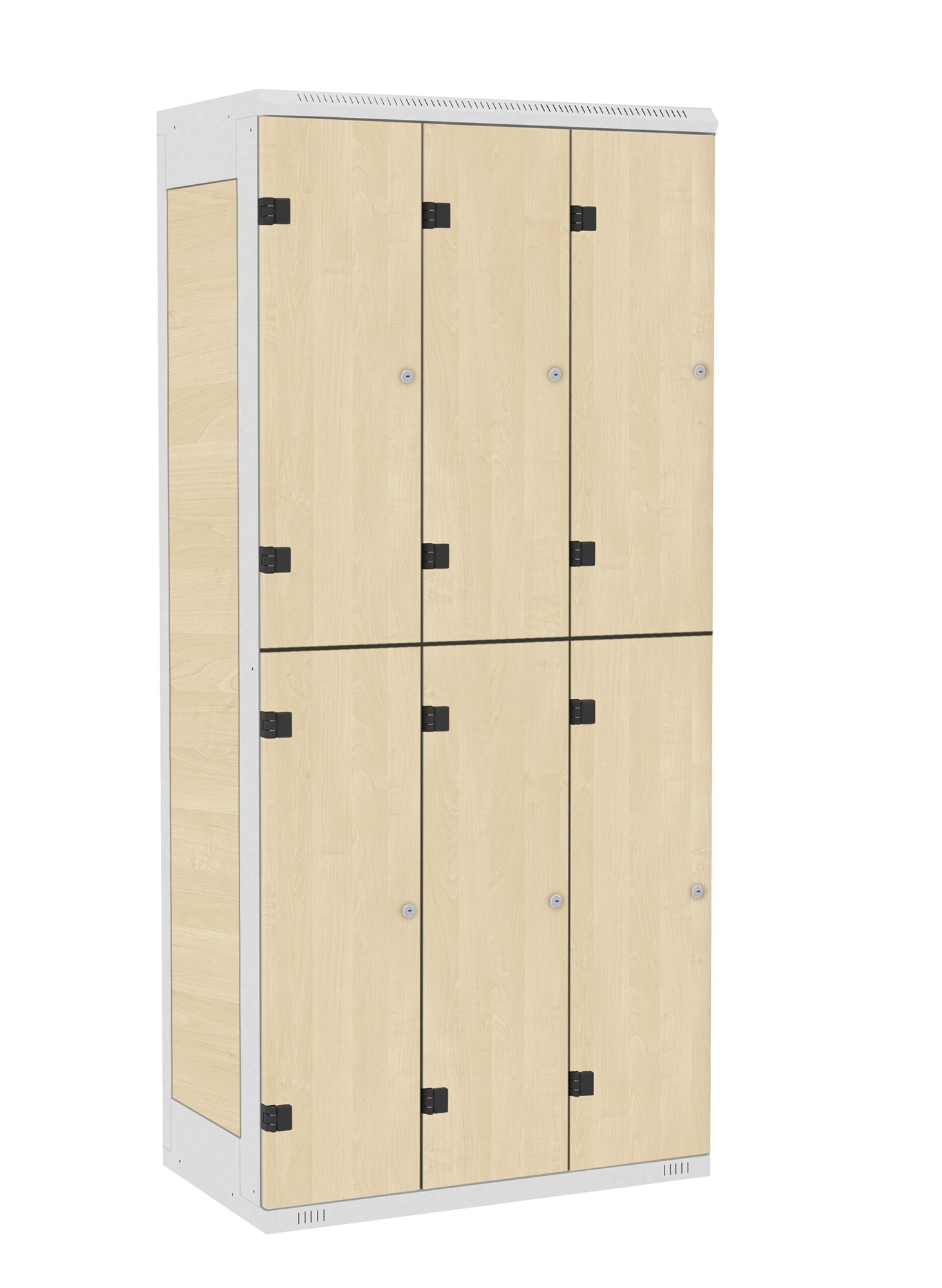 Our 6-door locker cabinet combines sheet steel and laminate to provide reliable, high-quality equipment for locker rooms in various facilities such as businesses, schools, sports facilities, hospitals, swimming pools and more.